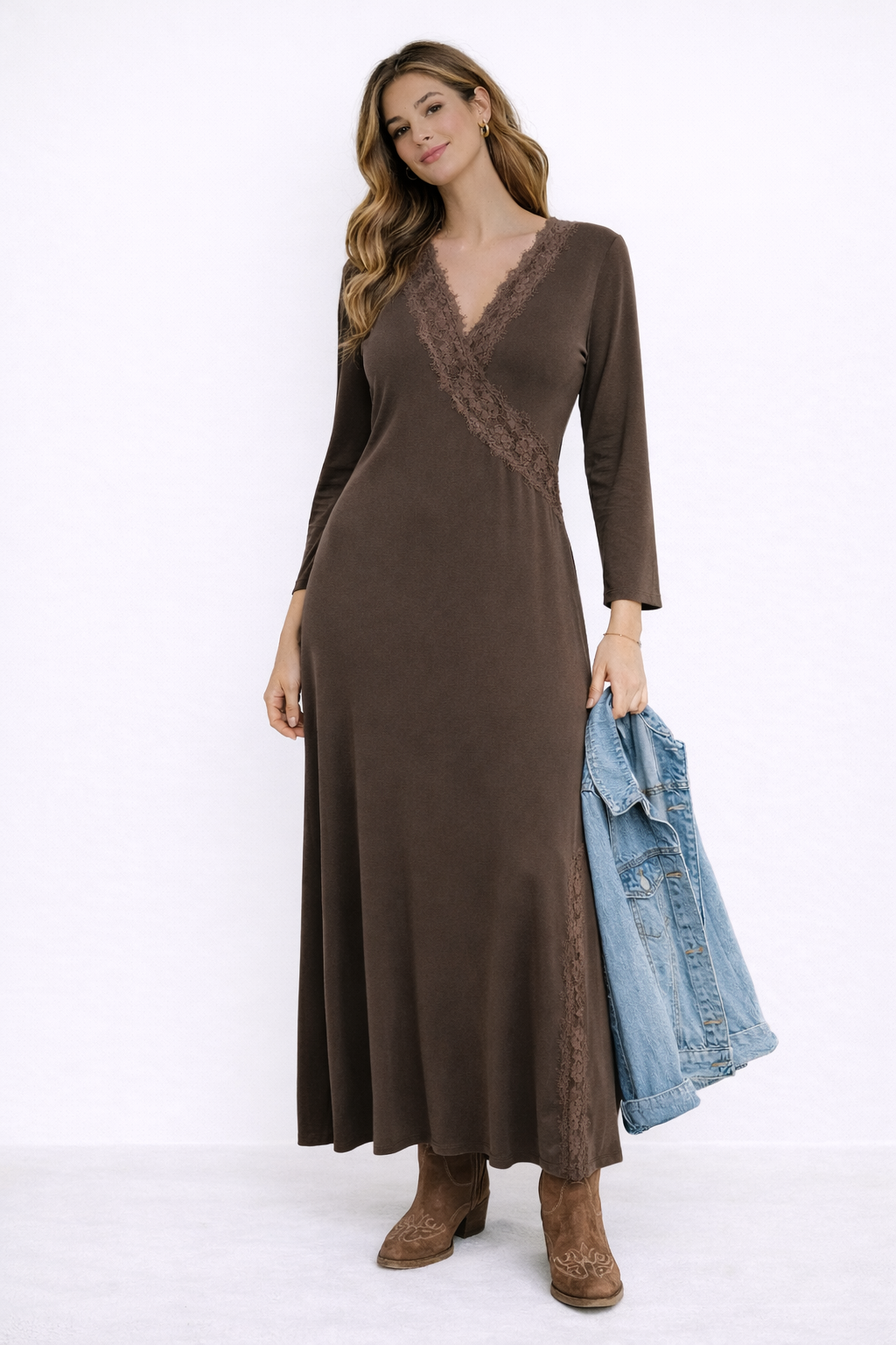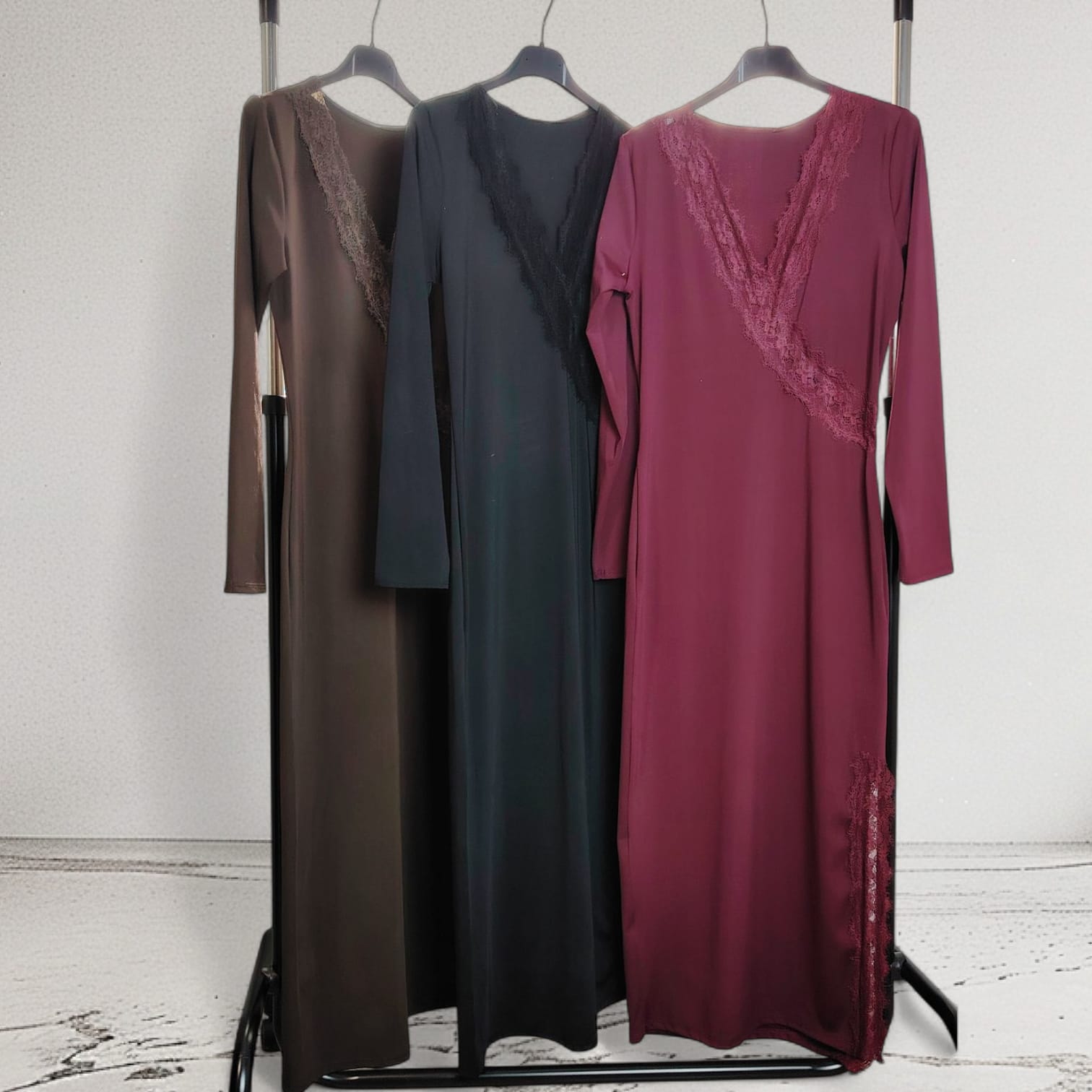 Confeccionado en poliéster con elastano, este diseño ofrece una caída suave, tacto agradable y un ajuste cómodo. Los detalles de encaje aportan un toque femenino y sofisticado, ideal para lucir un estilo elegante y favorecedor.